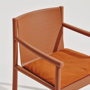 The Kata Collection takes inspiration from artisan-made wood and woven straw chairs, reimagining them with modern, sustainable solutions. In the Kata Lounge Chair, designed in 2021, this is realized through its innovative pattern design which utilizes 3D knit technology, minimizing material waste.