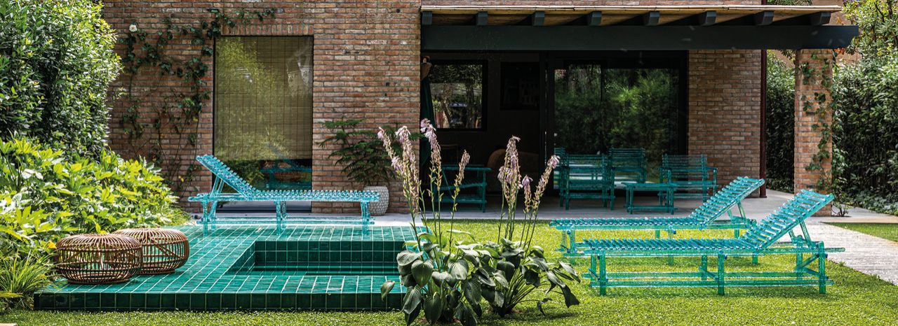 A collection composed of chair, armchair, bench, sun lounger, coffee table and tables.
