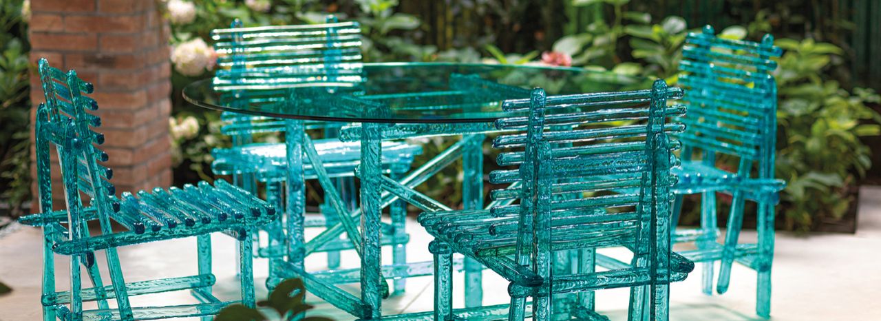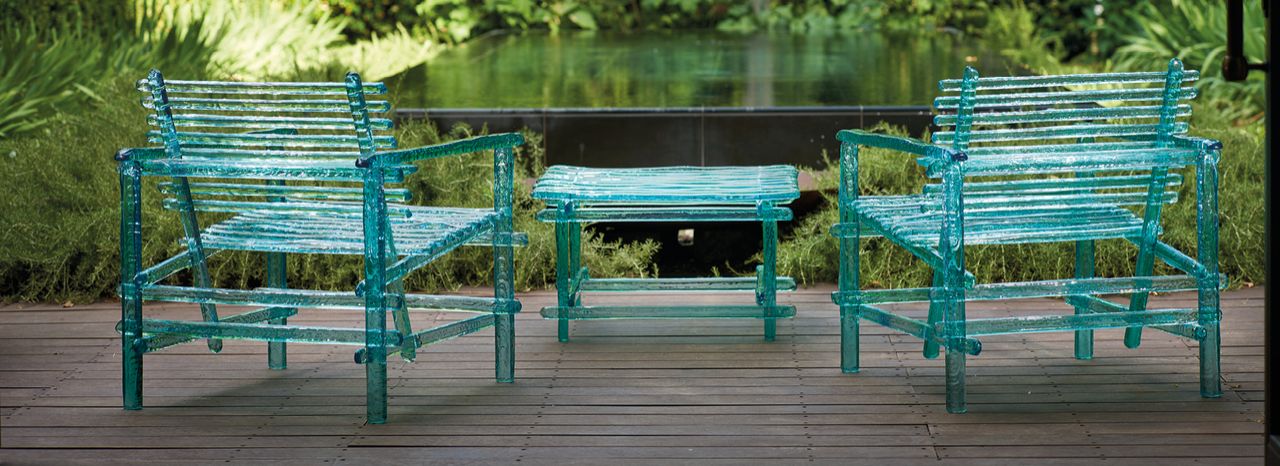 Clear and with the lightest of shades of colour, suave, imperceptible, in this collection where each model is made from a single weave of polycarbonate, moulded by hand in the classic green colour of natural glass.