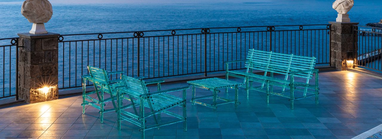 Sea and water, with their stunning reflections, become the protagonists of the living space through these furniture pieces that are welcoming landscapes of relaxation and comfort.