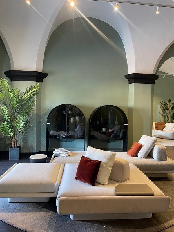 The environment hosted several brand novelties such as the Stami Night bedside table by Studiopepe together with iconic pieces of the brand, including Bolle lamps and the Audrey sofa that bear the signature of Massimo Castagna.