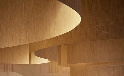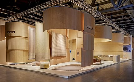 Ambiences gently evoked by hand-made lattices with Valencian wooden blinds welcomed the different product categories of the Gandia Blasco Group, evoking the layout of the traditional sudare screens. All this, in a clear manifestation of the philosophy of the acclaimed Japanese architect, characterized by the revision of the constructive legacy of his native country to bring it up to date, always prioritizing local materials and a sense of harmony with the natural environment.