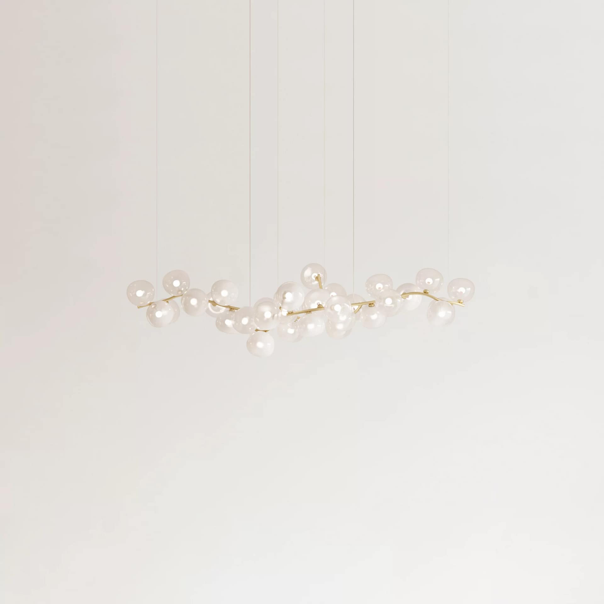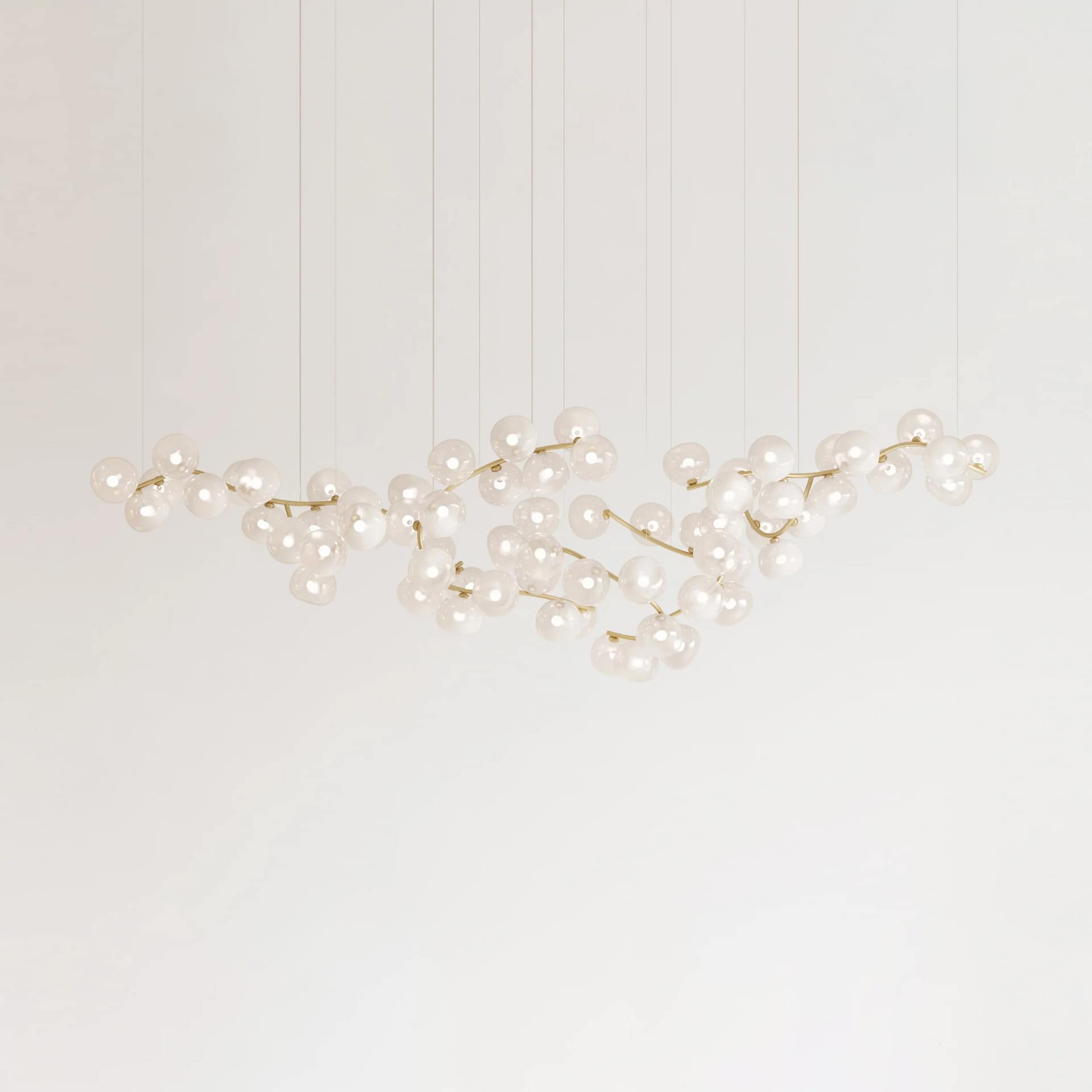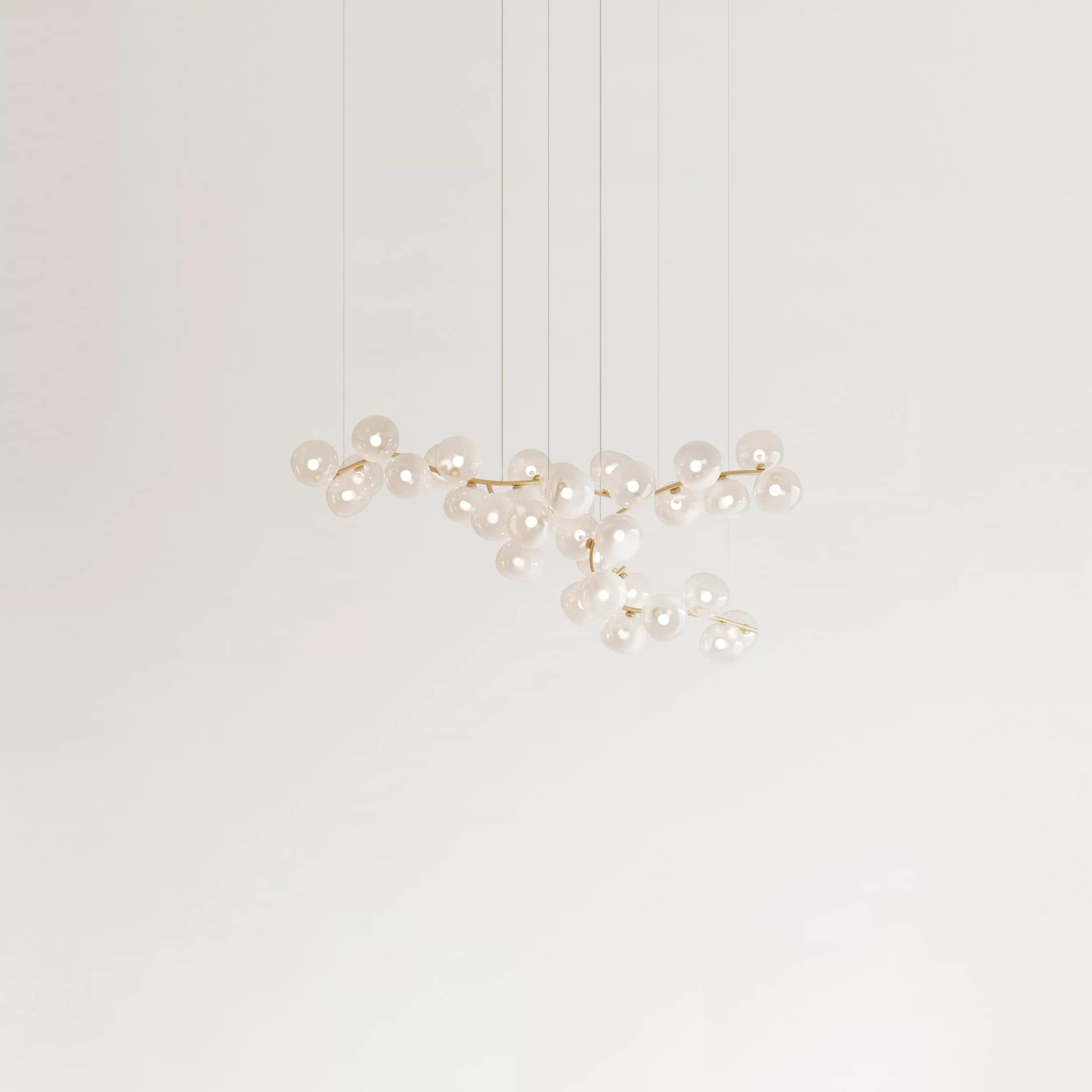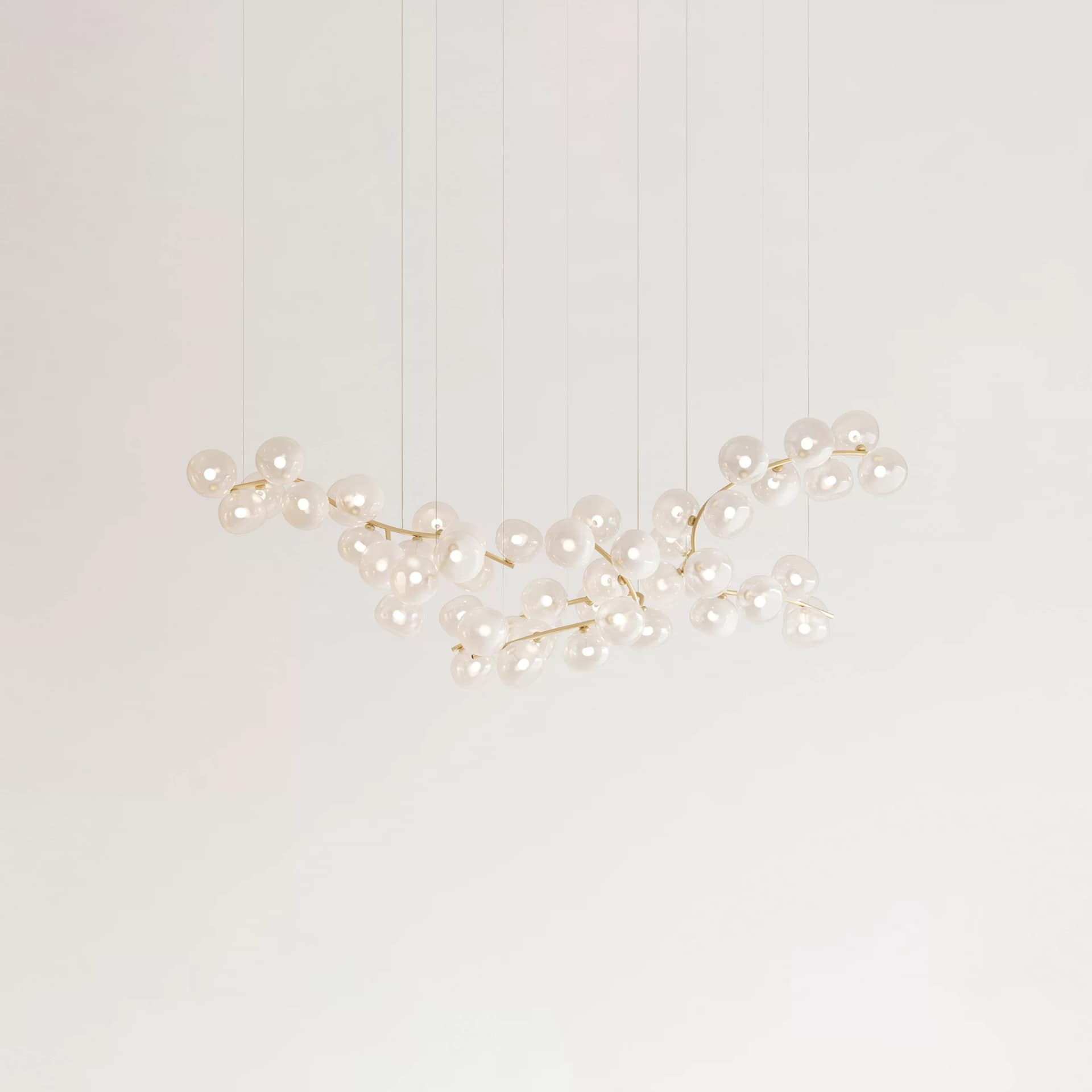 Between nature and abstraction, searching for a compositional balance between the elements, it is possible to play with extension and presence across space, with modular custom-made creations. Glass sphere shades are also available for customizable options
