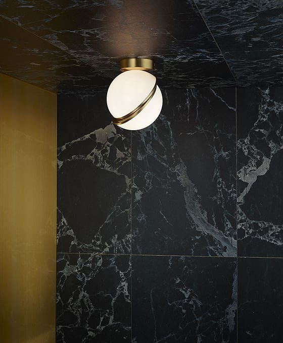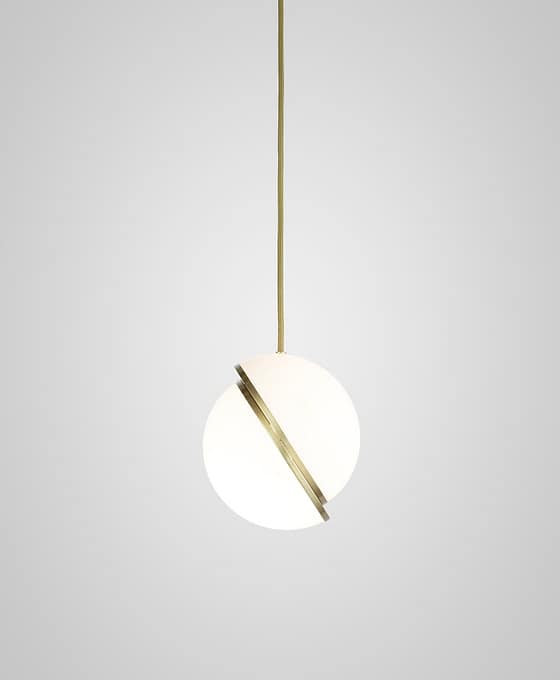 A miniature version of the popular Crescent Light, this illuminated sphere is sliced asymmetrically in half to reveal a crescent-shaped brushed brass fascia. Mini Crescent seamlessly combines the solid and the opaque.