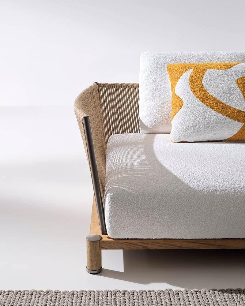 In a clever interplay of lines, the curved frame of backrests and armrests is reminiscent of a vibrant, enveloping fan. Available with two different seat depths, Daylight also features individual elements such as a sofa, round armchair, loveseat and sunlounger, which can be combined in multiple solutions, ideal for creating contemporary open-air oases.