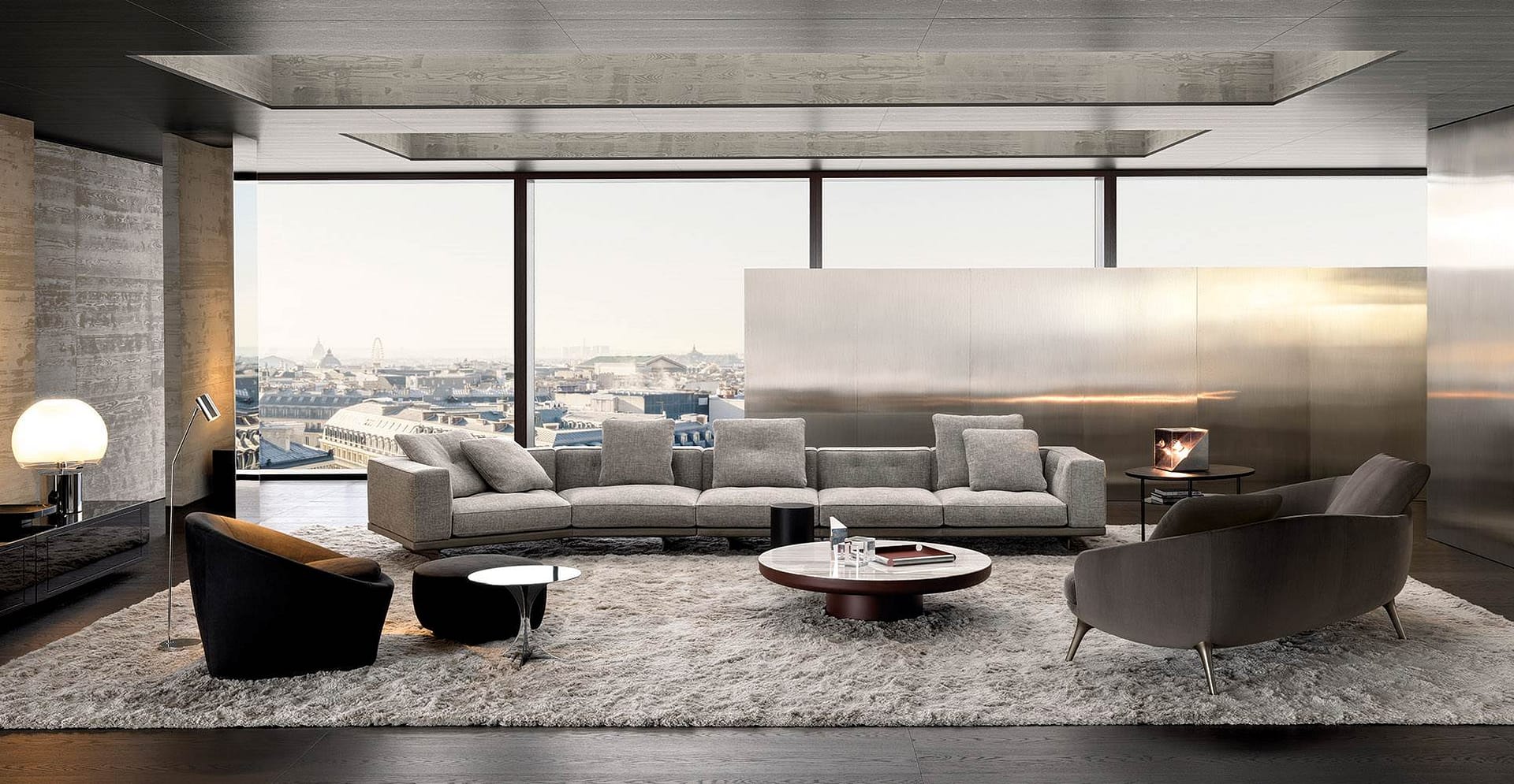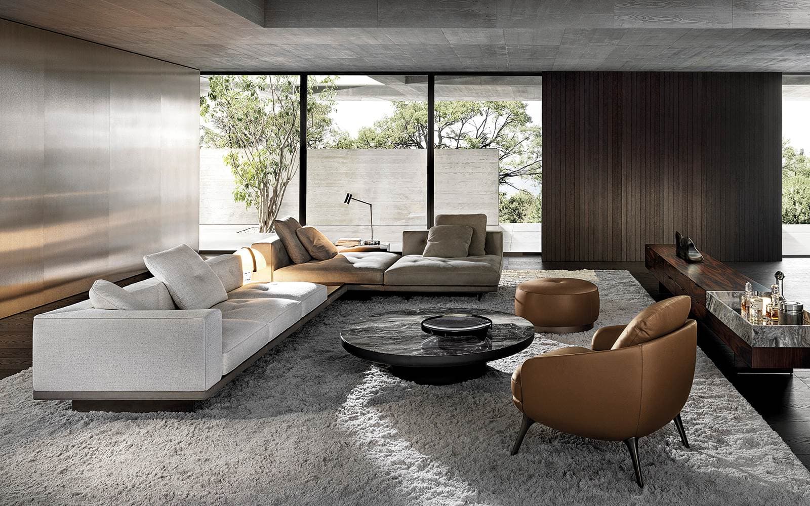 The instinct for the continuity of shapes, and lines, and for consistency of language and style typical of Minotti’s modus operandi, is embodied in the Dylan modular seating system. Refined and articulated volumes come together to bring to life a system expressed in three variants capable of meeting different areas of taste and as many ways of experiencing the domestic and hospitality spaces.