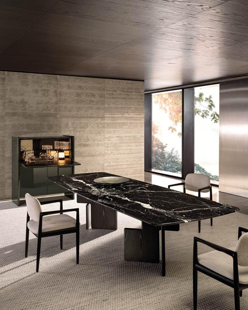 The base, in marble or wood hold up the round, oval or rectangular top with rounded edges. As a result of this continuity of materials between base and top, Nico boasts a unique aesthetic with a strong stage presence and timeless appeal, building a bridge between past and present.