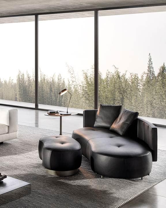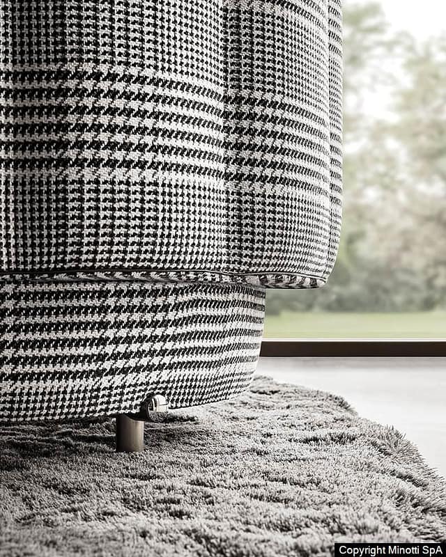 The feet, embellished with a small jewel-like button, preserve the interplay of vertical and horizontal elements inspired by the typical traditional Japanese manufacturing details from which the family takes its name, and accommodate the upholstered volume of the sofas and armchairs.