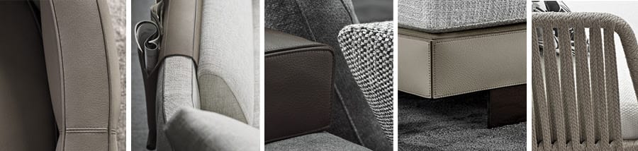The creative concept, uniqueness and aesthetic of the products in the new Indoor and Outdoor collections are enhanced by the 2020 Textile and Leather Collection. A textile collection exclusively created by the company, with the same care and know-how of a textile design firm, emphasising the refined combination of materials – fabrics, leather and saddle-hide – textures and patterns that characterise the new designs.