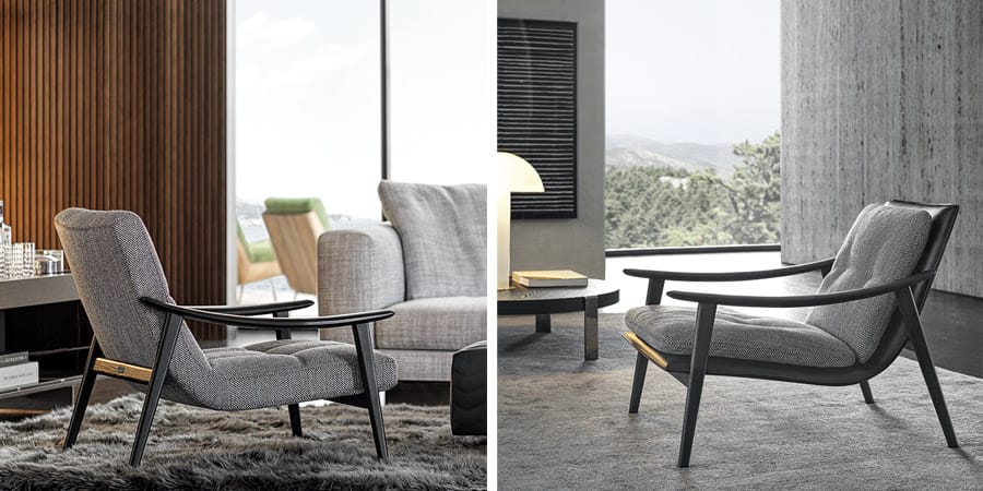 Finally, the Mattia sofa and armchairs, again by Rodolfo Dordoni, a new take on a 1970s design concept taken from the Minotti Archive, enrich the collection with their curved shapes and soft, enveloping seat.