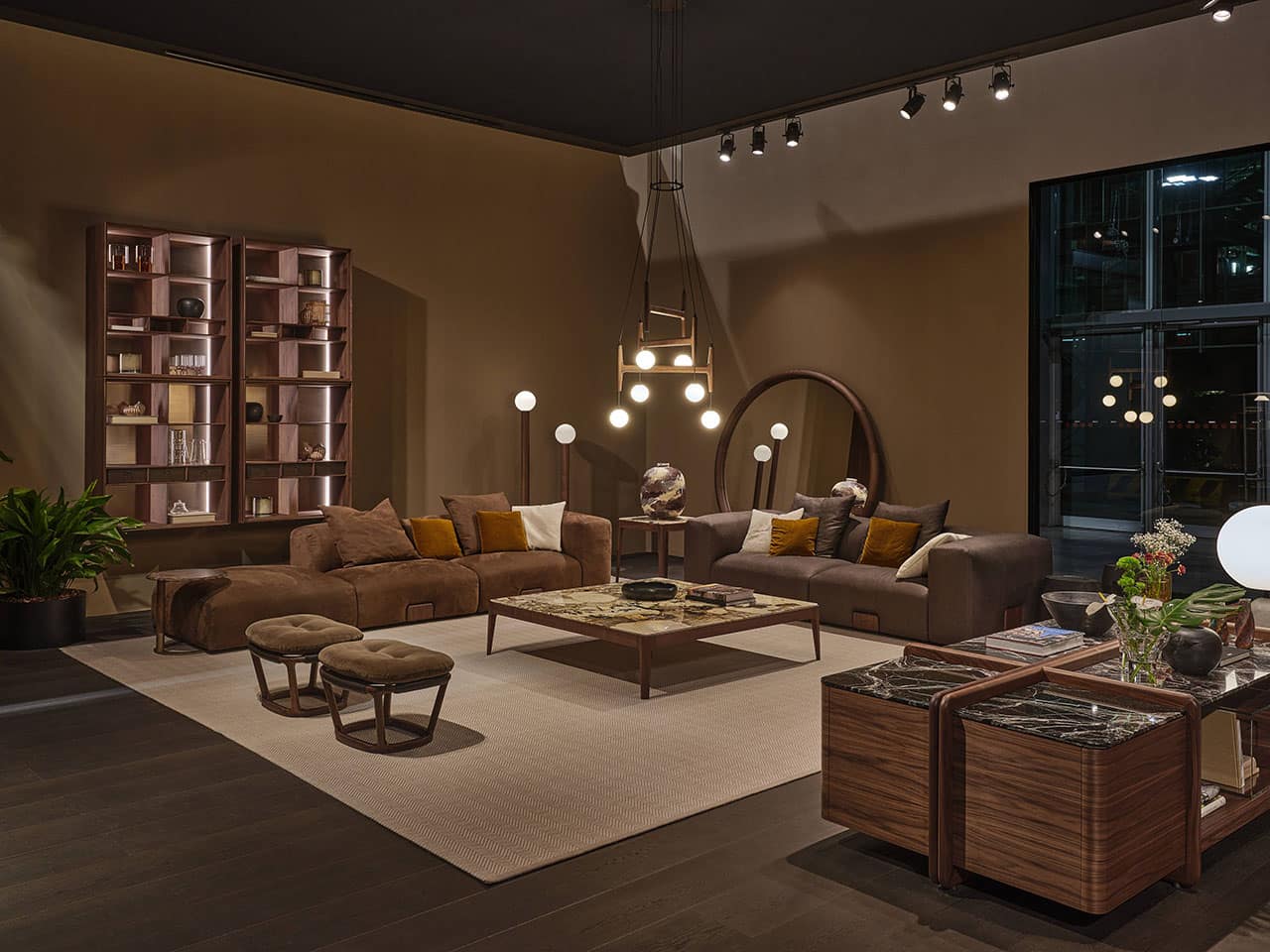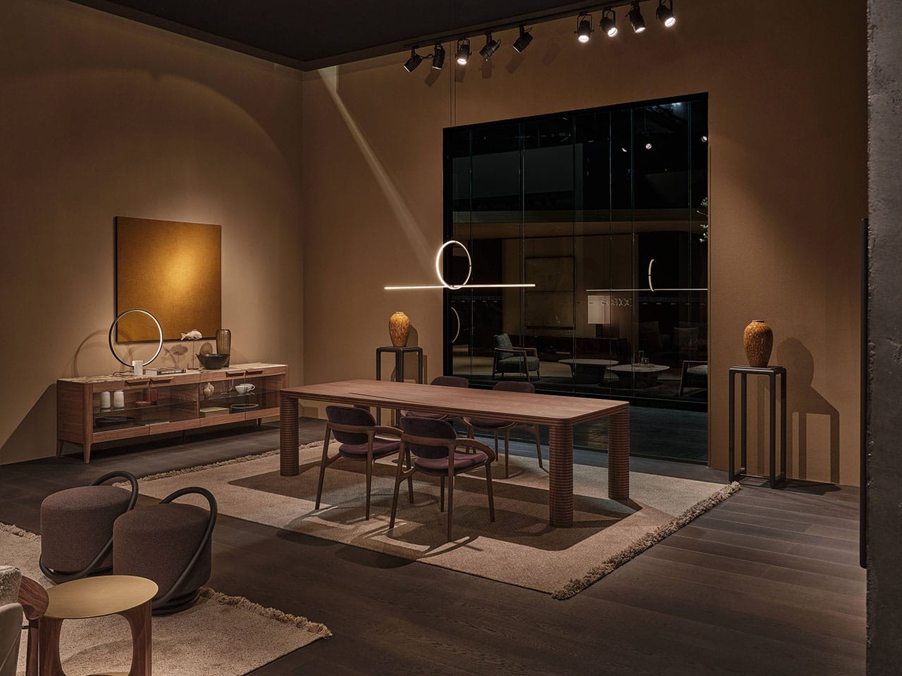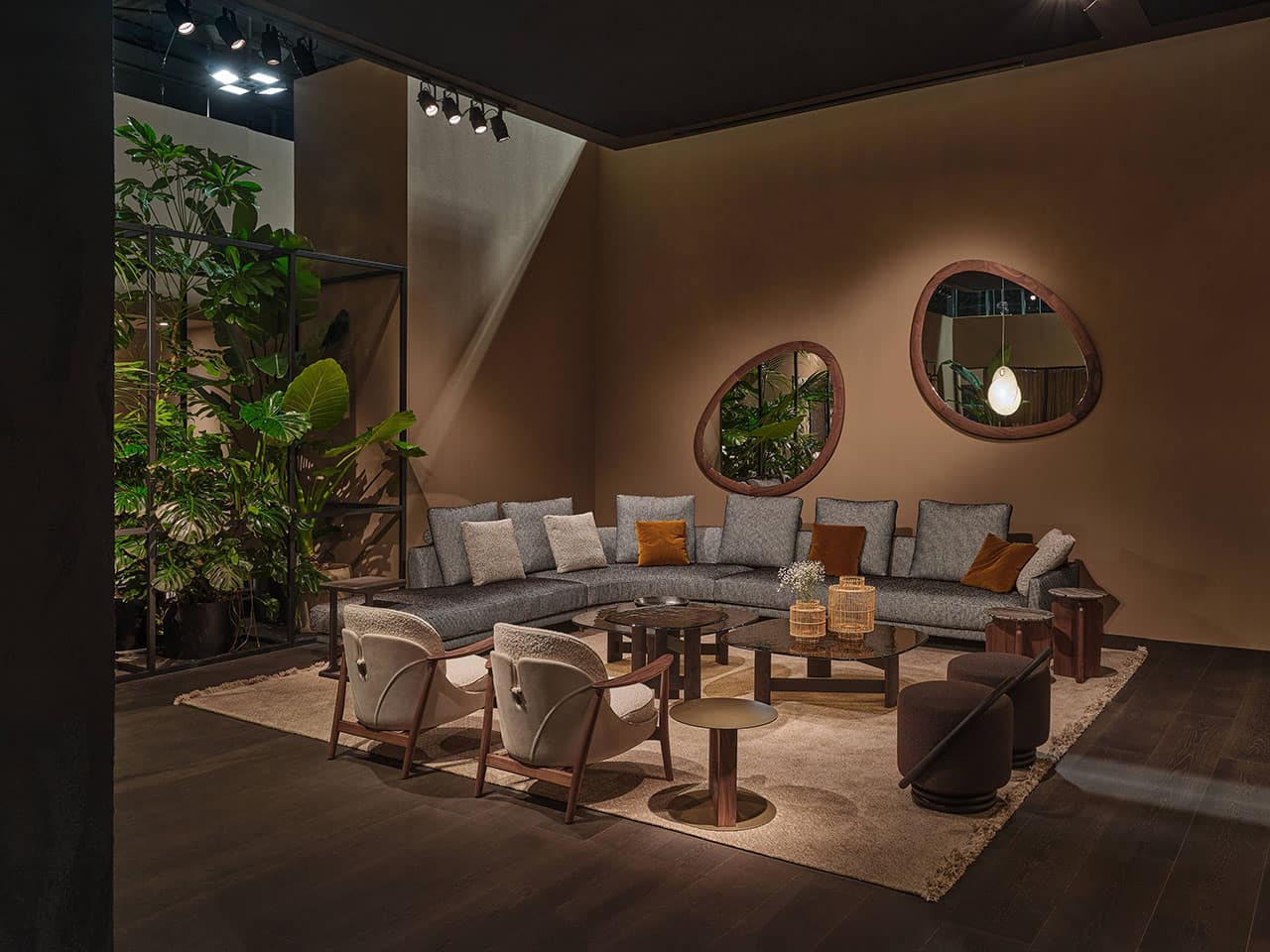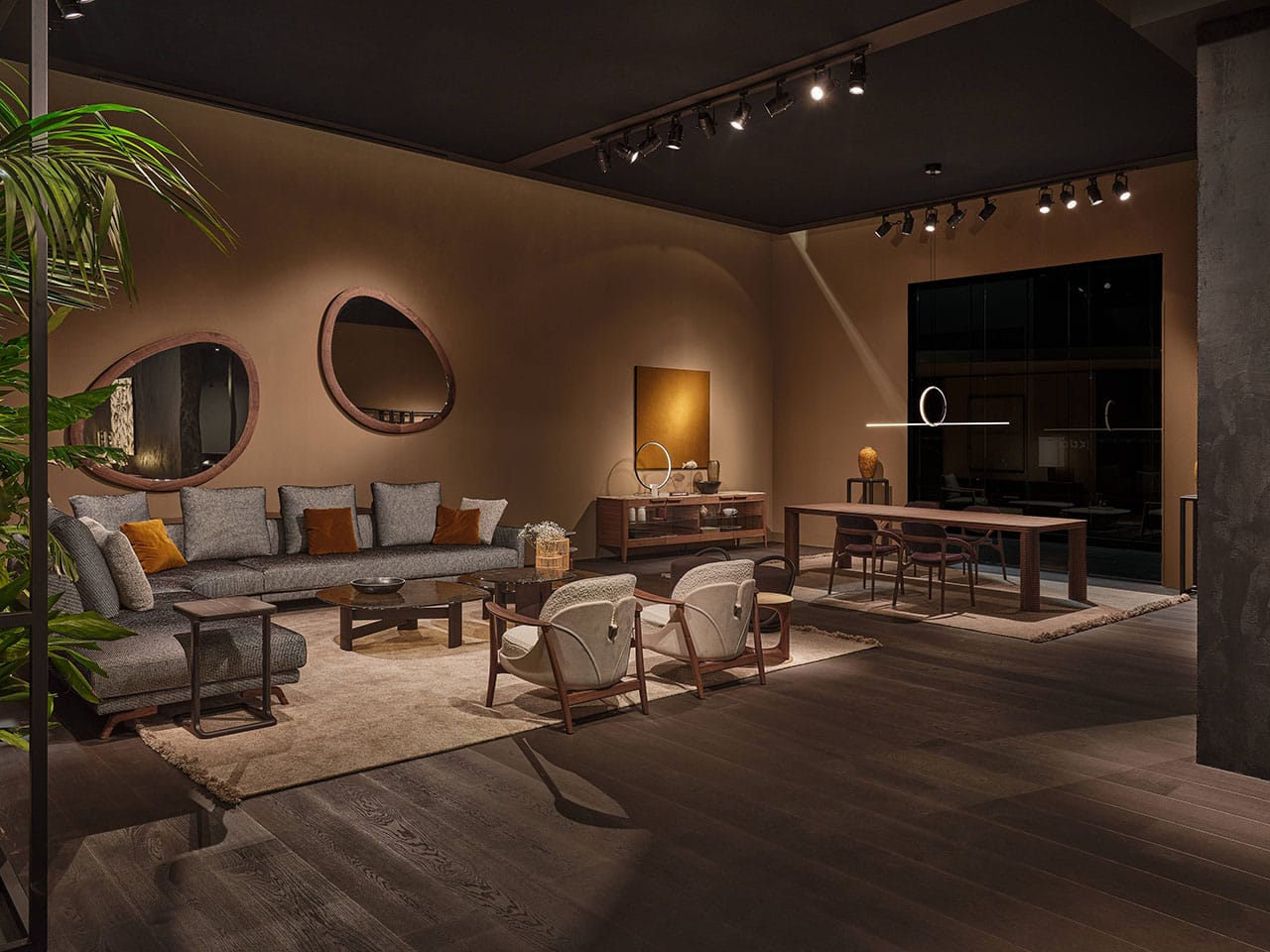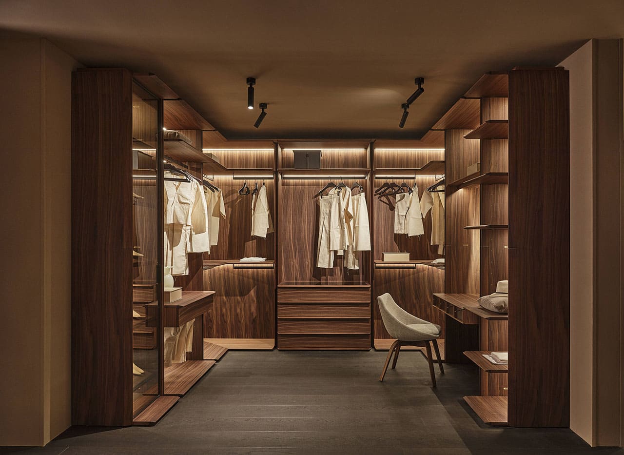Casa Porada, reimagined for 2025, takes centre stage at the 63rd edition of Salone del Mobile, the most important moment of the year for the design and interior sectors. This year, Porada presents the Twenty-Five collection, comprising over 20 products conceived and designed together with the brand’s long-term collaborators—both Italian and international designers. It’s a proven partnership that allows professionals to express their creative flair and Porada to bring out the aesthetic soul that so strongly distinguishes it. The design of the stand provides the visitor with a real Casa Porada experience, inspired by the beating heart of Milan, its history, and its timeless charm—a choice that celebrates the tradition of the Milanese home by linking contemporary design to the city's cultural heritage. The skilful use and positioning of openings, wings, and curtains arouse a sense of expectation and discovery that allows the visitor's attention to be focused on every detail. The warm shades of burgundy, brown, and ochre, in a harmonious fusion with the nuance of Canaletta walnut, make the environment enveloping and refined.