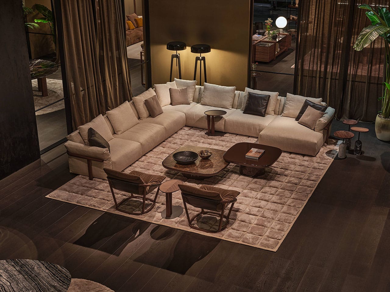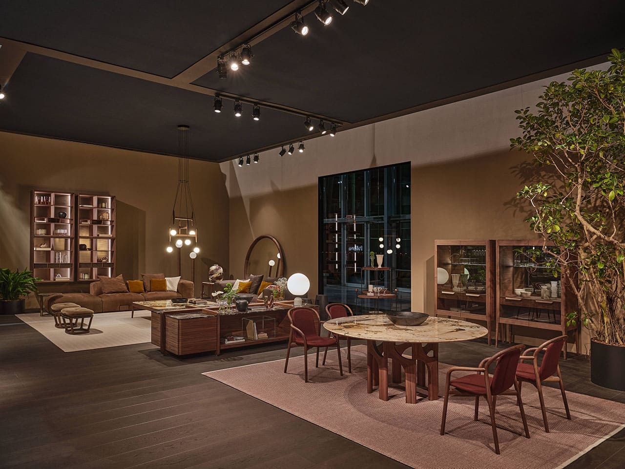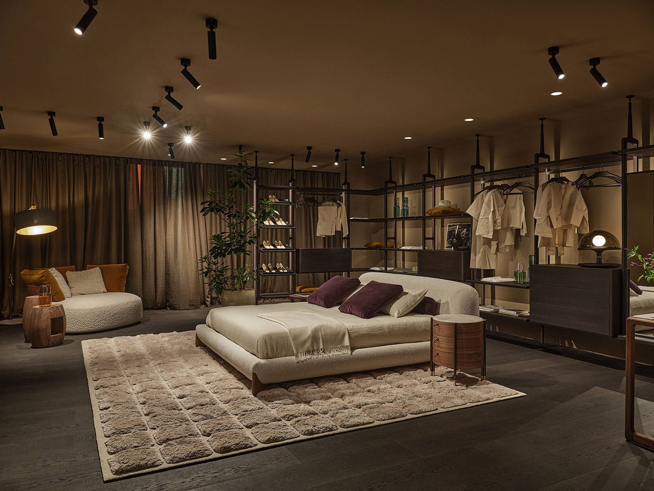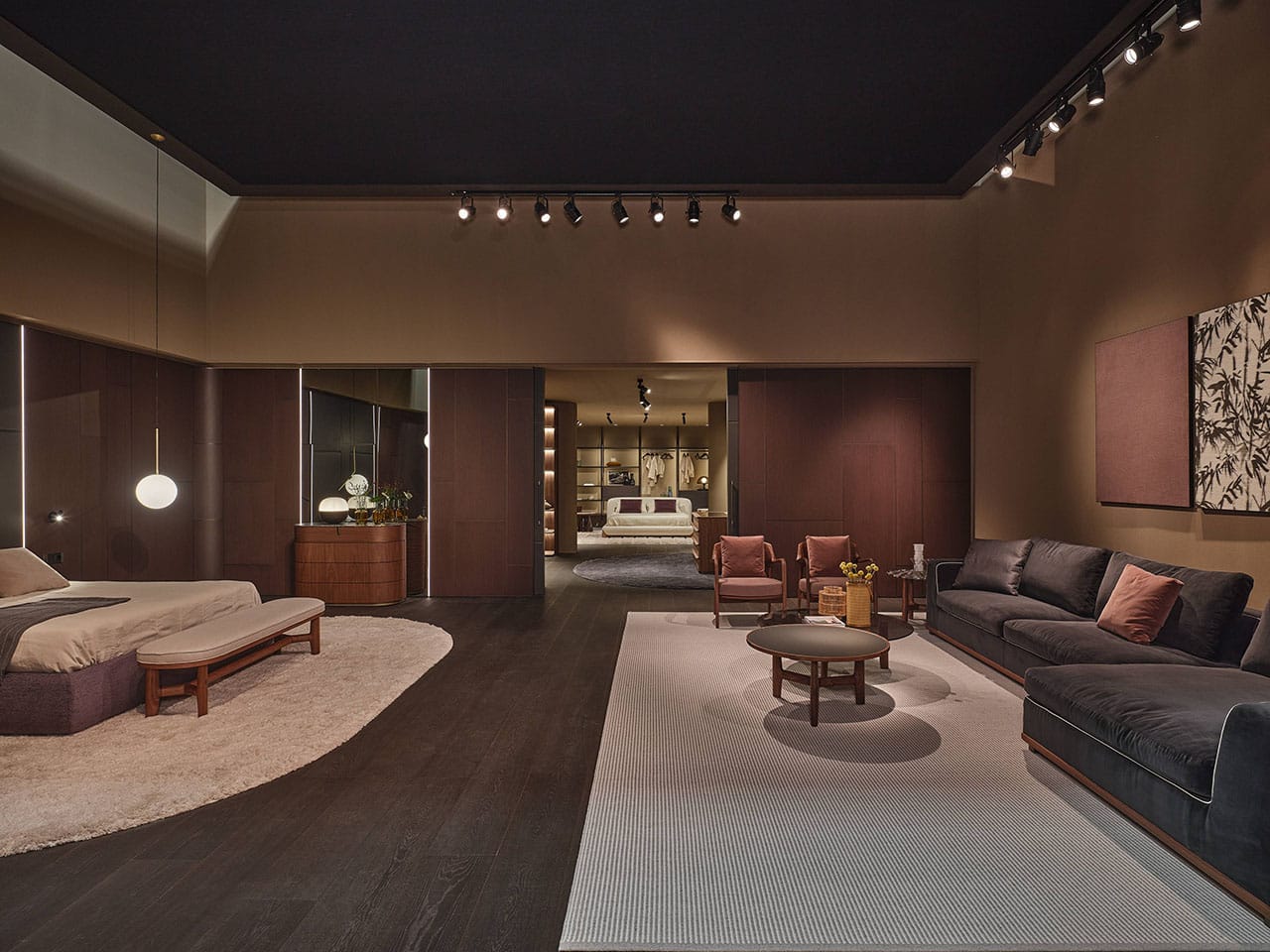Casa Porada, reimagined for 2025, takes centre stage at the 63rd edition of Salone del Mobile, the most important moment of the year for the design and interior sectors. This year, Porada presents the Twenty-Five collection, comprising over 20 products conceived and designed together with the brand’s long-term collaborators—both Italian and international designers. It’s a proven partnership that allows professionals to express their creative flair and Porada to bring out the aesthetic soul that so strongly distinguishes it. The design of the stand provides the visitor with a real Casa Porada experience, inspired by the beating heart of Milan, its history, and its timeless charm—a choice that celebrates the tradition of the Milanese home by linking contemporary design to the city's cultural heritage. The skilful use and positioning of openings, wings, and curtains arouse a sense of expectation and discovery that allows the visitor's attention to be focused on every detail. The warm shades of burgundy, brown, and ochre, in a harmonious fusion with the nuance of Canaletta walnut, make the environment enveloping and refined.