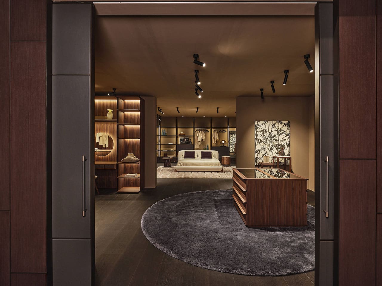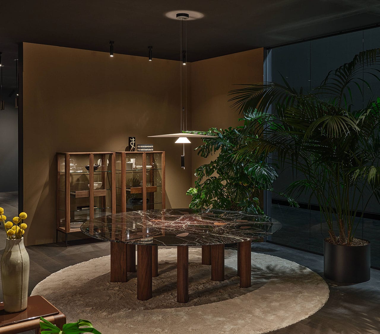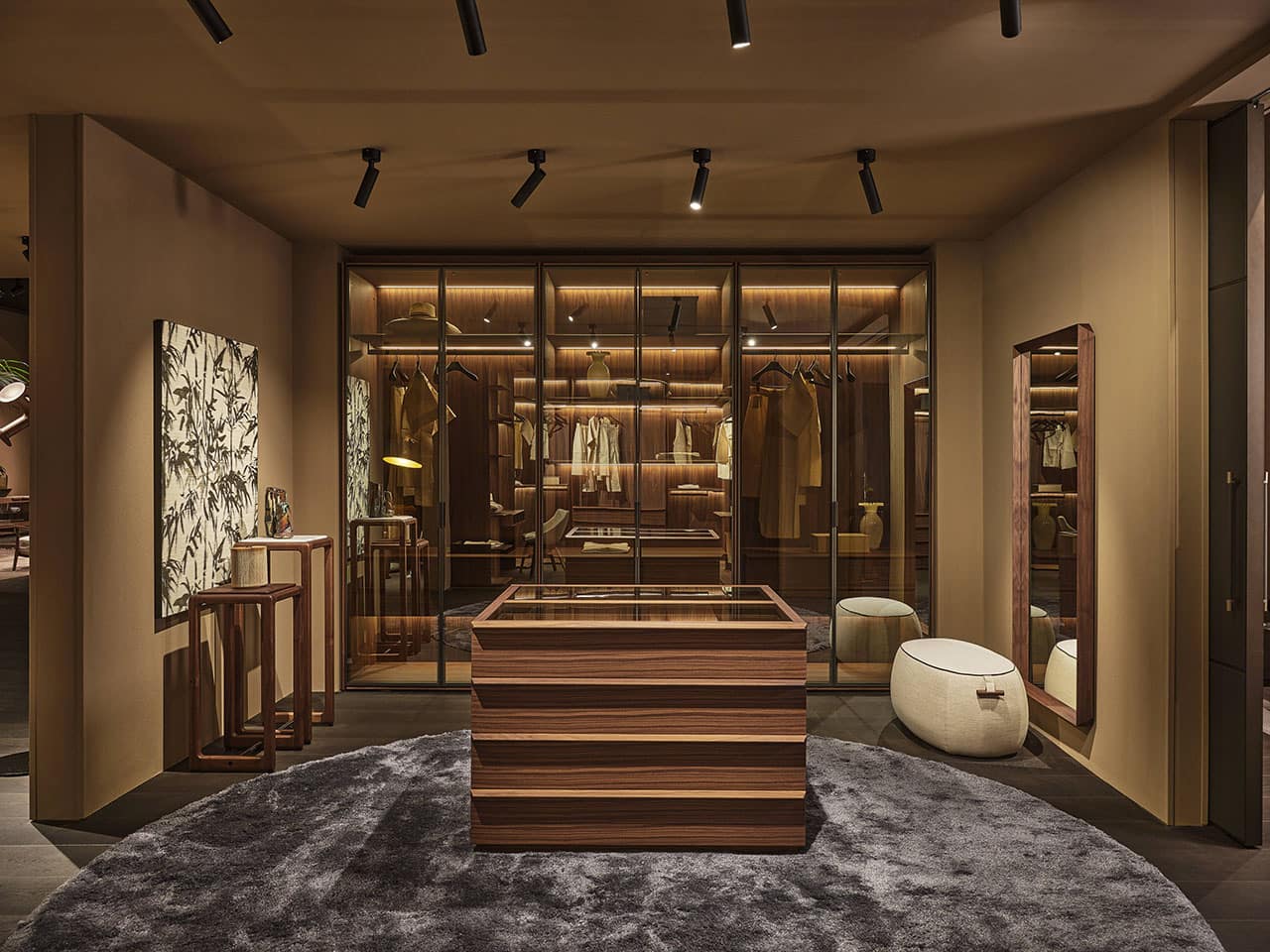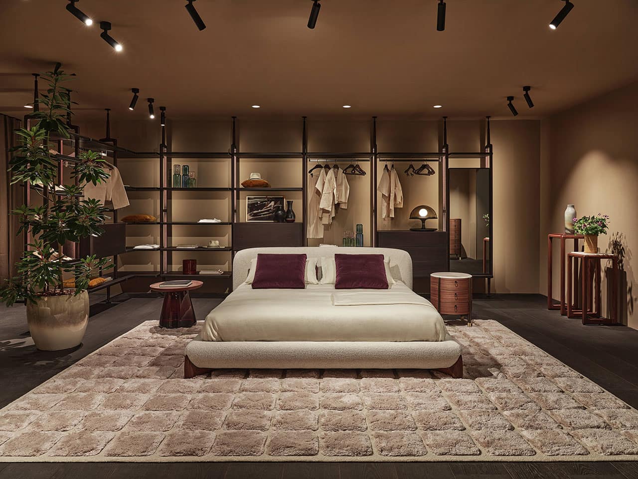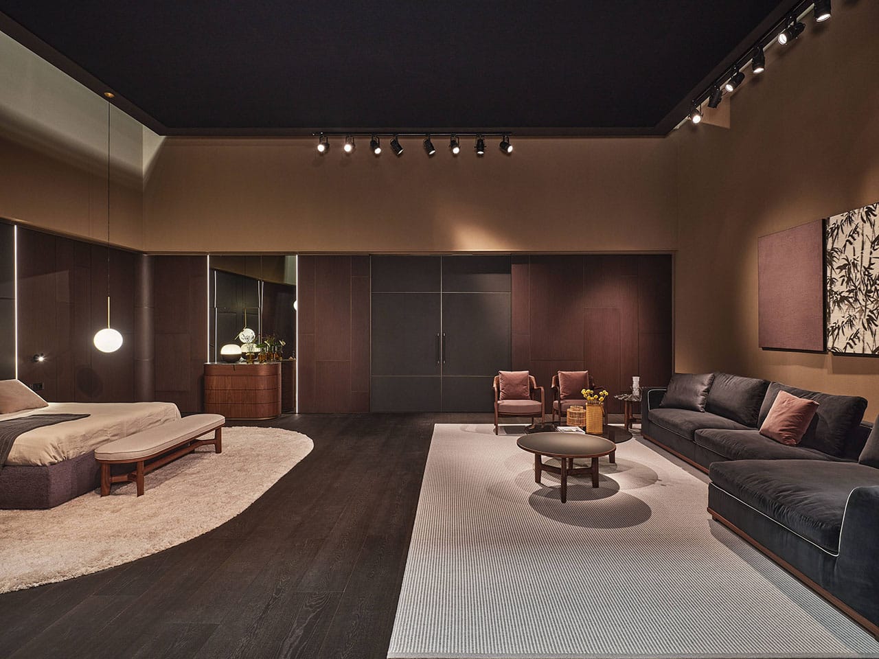 Casa Porada, reimagined for 2025, takes centre stage at the 63rd edition of Salone del Mobile, the most important moment of the year for the design and interior sectors. This year, Porada presents the Twenty-Five collection, comprising over 20 products conceived and designed together with the brand’s long-term collaborators—both Italian and international designers. It’s a proven partnership that allows professionals to express their creative flair and Porada to bring out the aesthetic soul that so strongly distinguishes it. The design of the stand provides the visitor with a real Casa Porada experience, inspired by the beating heart of Milan, its history, and its timeless charm—a choice that celebrates the tradition of the Milanese home by linking contemporary design to the city's cultural heritage. The skilful use and positioning of openings, wings, and curtains arouse a sense of expectation and discovery that allows the visitor's attention to be focused on every detail. The warm shades of burgundy, brown, and ochre, in a harmonious fusion with the nuance of Canaletta walnut, make the environment enveloping and refined.