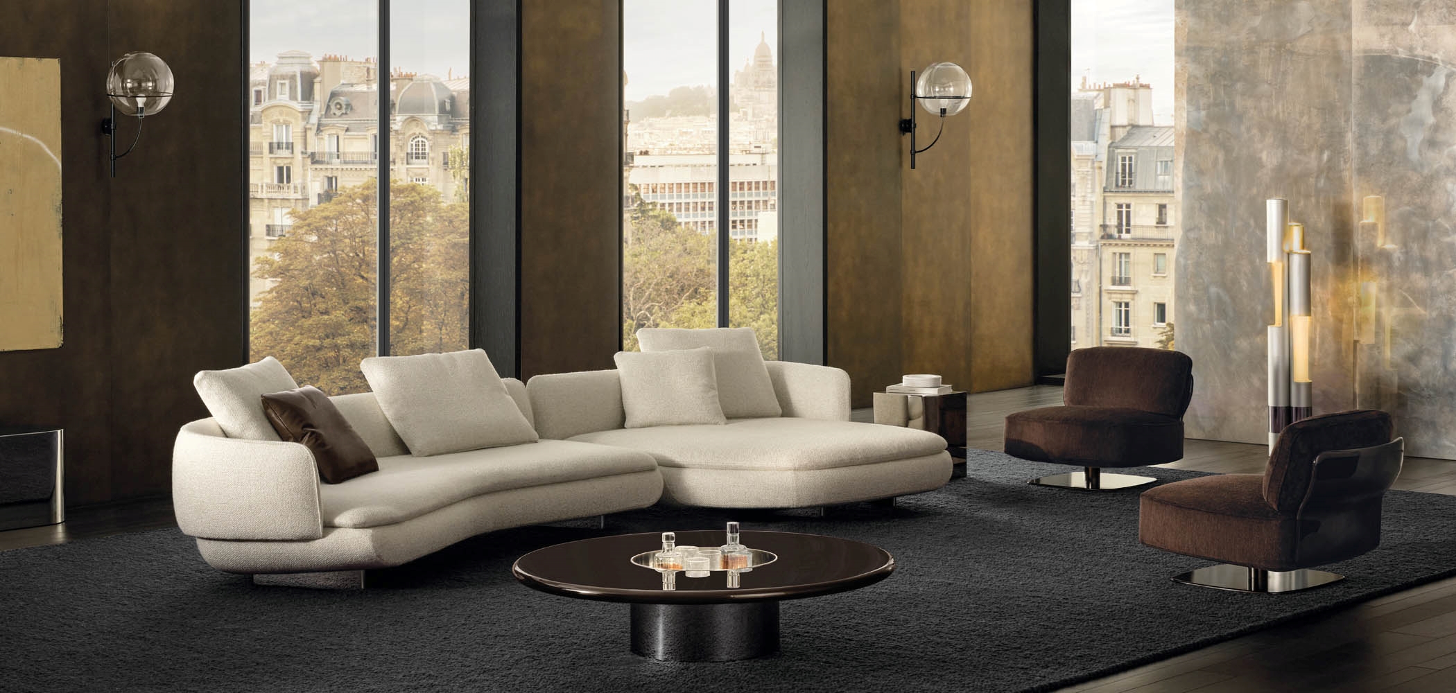 The wide range of color finishes available for the stitched profile allows for extensive personalization, ensuring each Riley system can be tailored to complement any interior design scheme. This customization capability, combined with Minotti’s exceptional upholstery craftsmanship, makes each piece truly one of a kind.