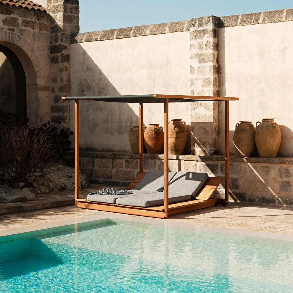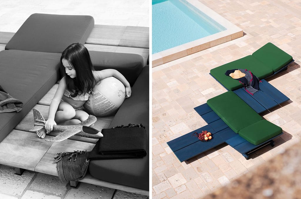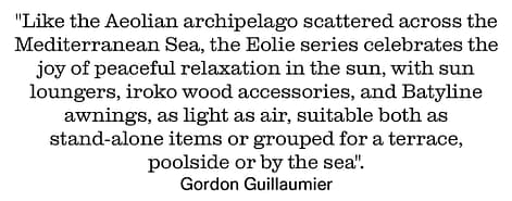 With its clean and essential yet strong and recognisable design, EOLIE is the new modular outdoor collection designed by Gordon Guillaumier, comprising sun loungers, tables and gazebos.