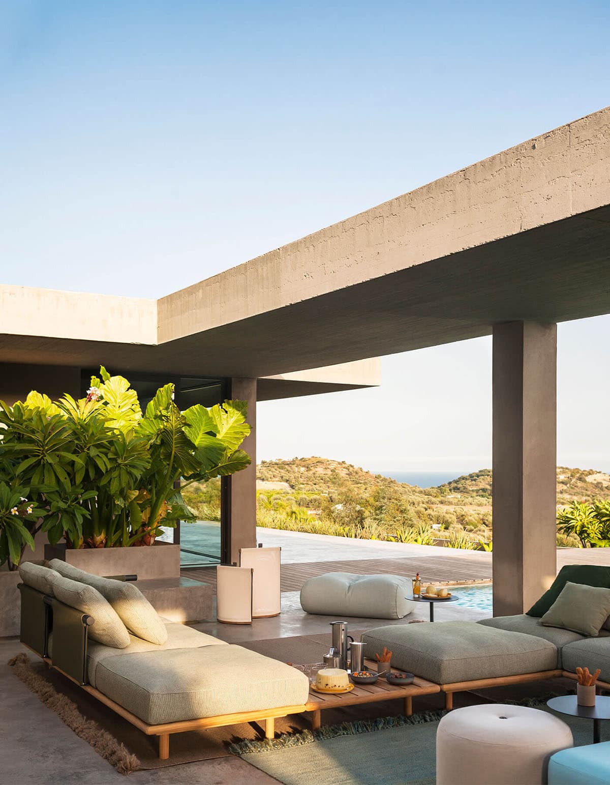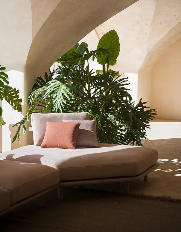 The collection also includes an element that is completely new for RODA: a hexagon shaped module, that can be used both as a single furnishing element and as a corner module in a composition, suitable for different home environments. A fine coffee table with teak slatted or natural stone top complete EDEN collection.