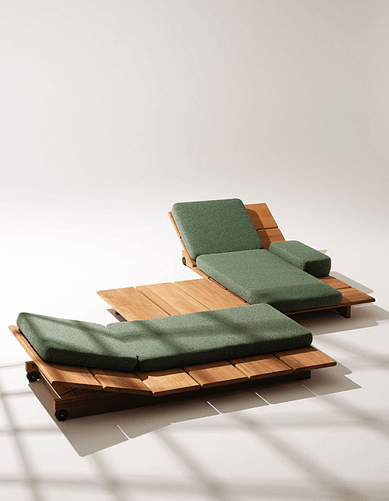 The EOLIE outdoor collection boasts a refined, precise and essential design. This outdoor furniture line is a Like an archipelago of elements, designed and developed around the juxtaposition of a wide iroko wood slat.
