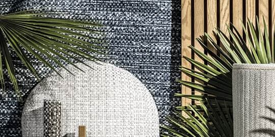 A vast range of options connects the indoor – with cottons, wools and linens – with the outdoor, featuring yarns in 100% recyclable and breathable polypropylene.