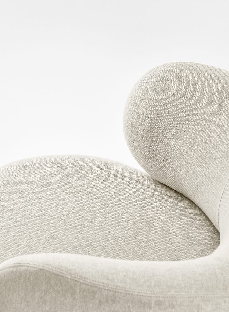 Akiko is here declined in its Lounge version: an armchair that features soft, enveloping volumes characterized by upholstery with differentiated-density polyurethane foam and polyester fiber. The seat, circular in shape, and the backrest, stretched forward to form two armrests, are held together by a “warm grey” painted metal frame. The cover of the Akiko Lounge armchair is removable and can be made in various colors of fabric or leather found in the Gallotti&Radice catalog.
