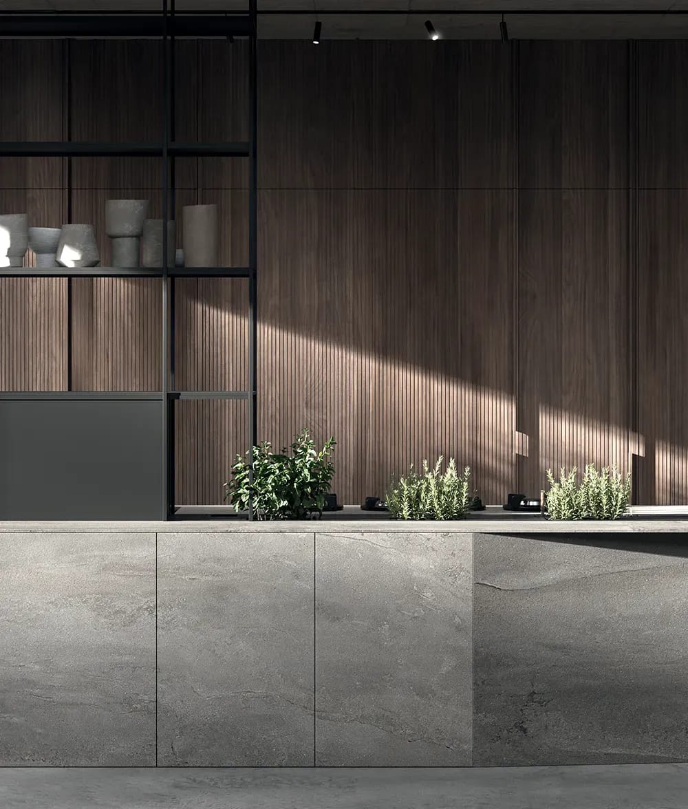 Nativia by The Cut was born with this mission. To create an open environment where you can cook, have breakfast, work, study, and ‘cultivate’ in its broadest sense, fostering conversation between people and different areas of the home, starting from the living area and continuing beyond, towards outdoor spaces with a frame that transforms from a kitchen element into a vertical garden.
