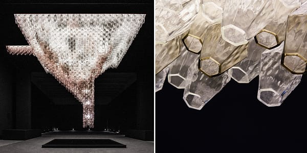 This exhibition offers the opportunity to stage – in the Giorgio Cini Foundation’s Sala Carnelutti – a Tribute to Carlo Scarpa, a reconstruction of the monumental chandelier with multicoloured polyhedrons designed by the architect and produced by Venini’s master glassmakers for the Veneto Pavilion at Expo 61, held in 1961 in the city of Turin.