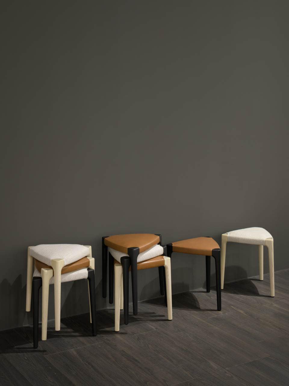 Building on the 2022 Ticino chair's success, the stool embodies simplicity, practicality, and versatility inspired by traditional farm chairs from southern Swiss Ticino and northern Italy. Easy to move, stackable, and lightweight, the design represents synthesis of innovation and tradition with essential lines and harmonious curves. Available with base in natural ash, charcoal-dyed ash, or PVC supports with interchangeable black PVC or felt feet. Seat options include woven cellulose rope in collection colors for rustic aesthetic, or padded with expanded polyurethane foam lined with acrylic fiber layers. Upholstery in fabric, leather, or Cuoietto, fully removable. Compact profile for dining or office.