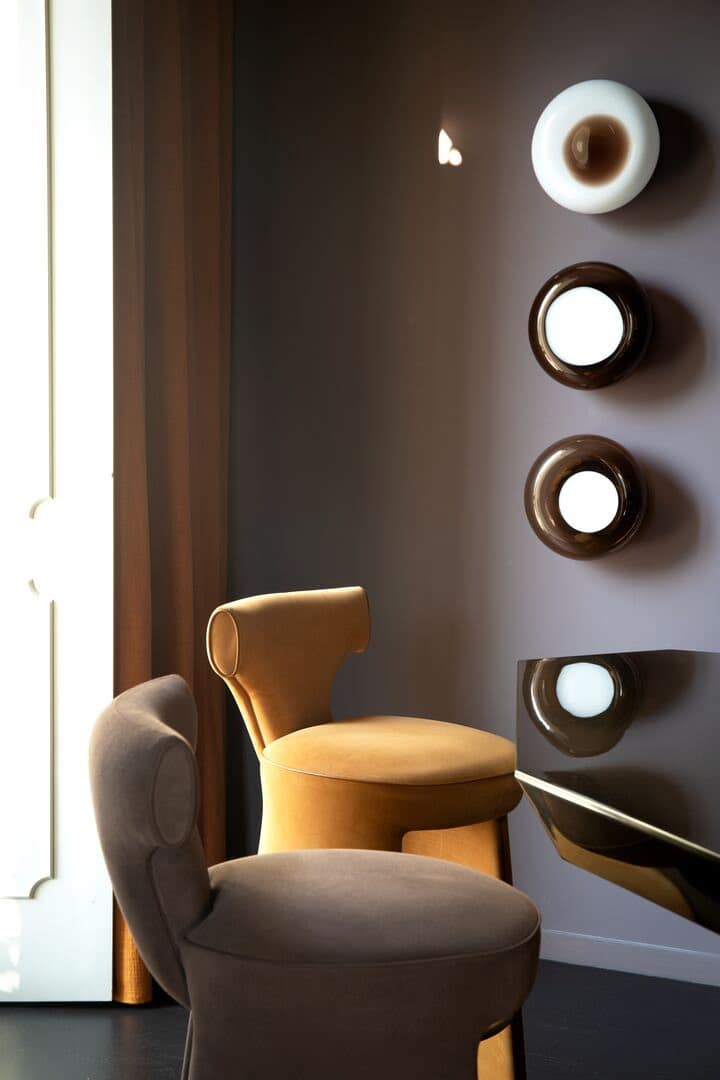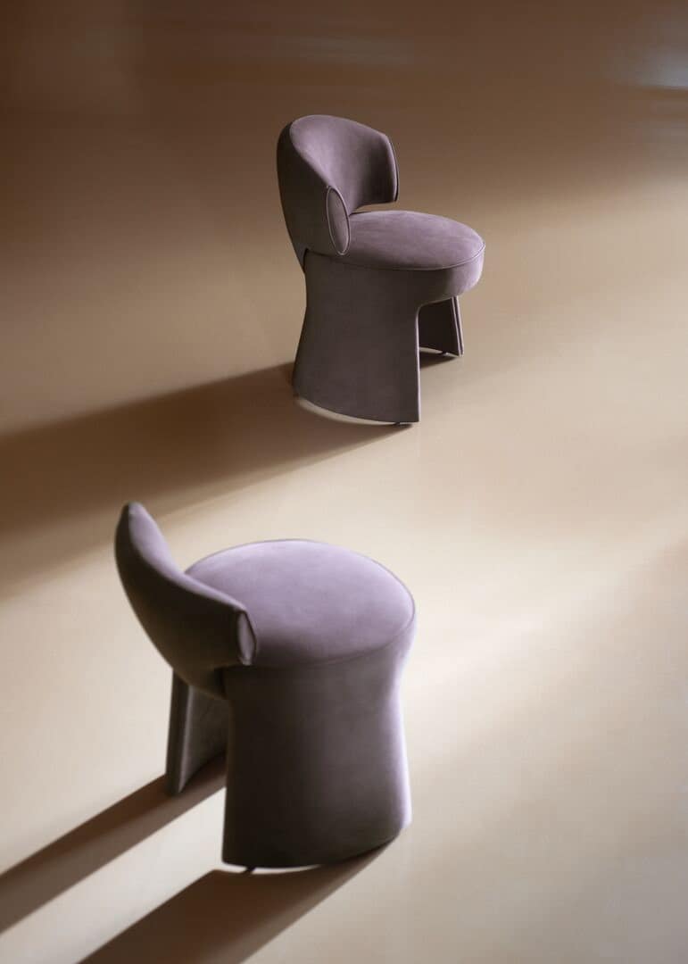 Effortlessly merging Italian elegance with enveloping comfort, the Inga collection comprises high stool and chair in refined, contemporary design. A natural evolution of the Inga pouf, pieces are defined by slender cylindrical base with metal footrest and ergonomic backrest. Structure orchestrates solids and voids, supported by semicircular legs, with low, slightly curved backrest adapting naturally to the base. Completely upholstered in fine leather throughout for contract and residential applications. Available in chair, stool, and pouf configurations. Playful contemporary profile with sculptural lines and subtle proportions. Unveiled at Salone del Mobile 2025 as part of West Coast Aesthetics-inspired collection.
